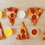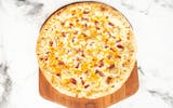 Pizza sauce, cheese, bacon ground beef & pepperoni.