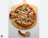 Pizza sauce, cheese, your choice of 3 meats and 3 vegetables.